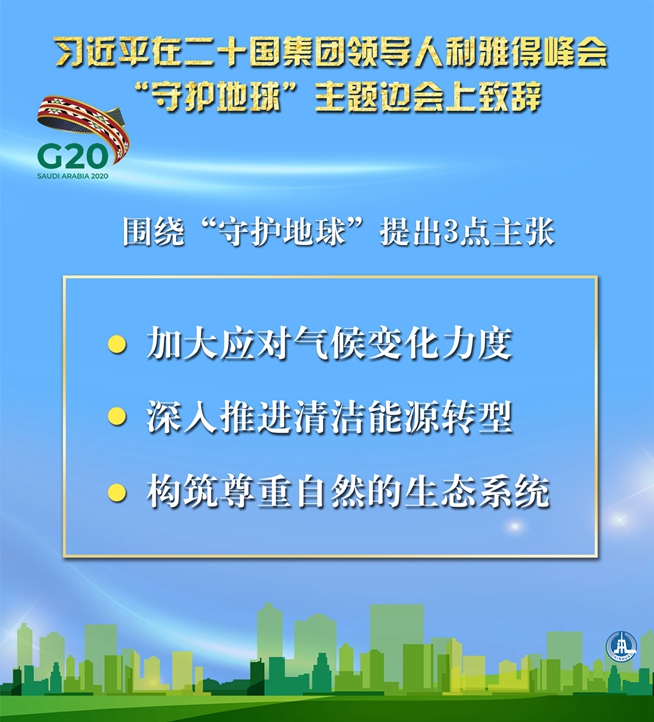 海報(bào)|習(xí)近平在二十國集團(tuán)領(lǐng)導(dǎo)人利雅得峰會(huì)“守護(hù)地球”主題邊會(huì)上致辭