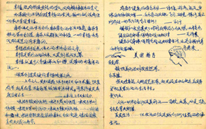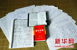 記者們翻看巨曉林的學(xué)習(xí)資料和日記