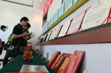 記者們查看巨曉林的詩(shī)歌、漫畫(huà)和獲得的榮譽(yù)證書(shū)
