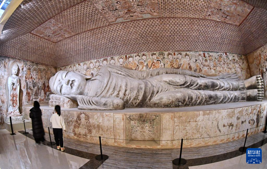 3月29日,观众在参观“如是莫高”敦煌艺术大展中展出的莫高窟第158窟的复刻版本。