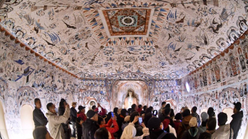 4月6日,人们在法国巴黎大皇宫举行的2025年巴黎艺术博览会上参观。