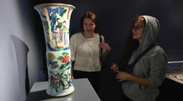 4月24日,人们参观卡塔尔多哈卡塔拉文化村举行的中卡书法交流展。