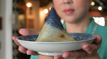 这是5月26日在“彩画千年——中国官式彩画传承与创新展”上拍摄的用彩画元素创作的服饰系列作品。