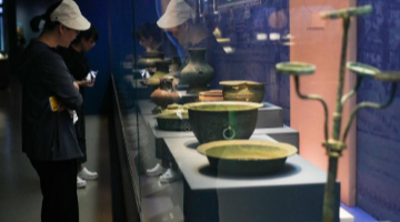 这是5月26日在“彩画千年——中国官式彩画传承与创新展”上拍摄的部分彩画绘制材料。