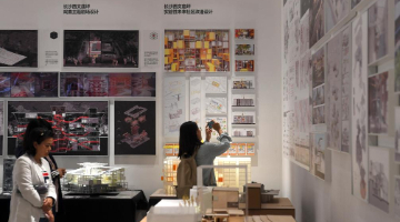 5月26日,嘉宾在“彩画千年——中国官式彩画传承与创新展”上参观。