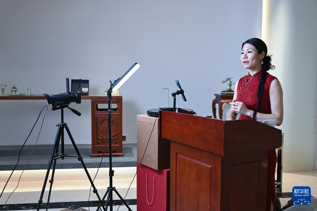 8月18日,主播在莆田仙游三福艺术馆进行网络直播带货。