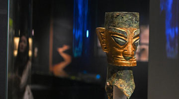 1月17日,上海博物馆讲解员为参观者讲解马桥遗址出土文物。