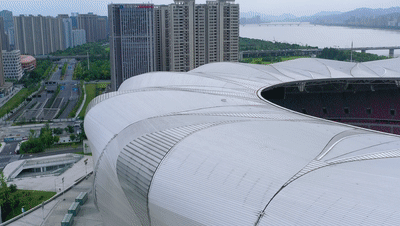 远看好似一朵绽放在钱塘江畔的“大莲花”