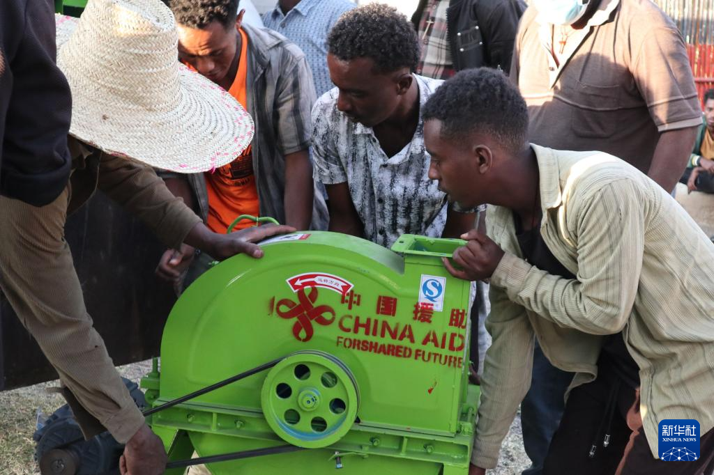 11月26日,在埃塞俄比亚奥罗米亚州的戈迪诺村,当地村民搬运中国捐赠的农业设备。新华社记者 刘方强 摄