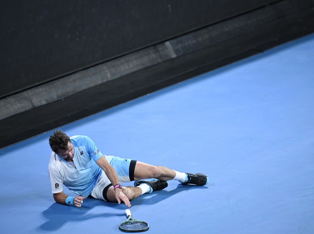 1月24日,瓦林卡在比赛中摔倒。新华社发(王申 摄)