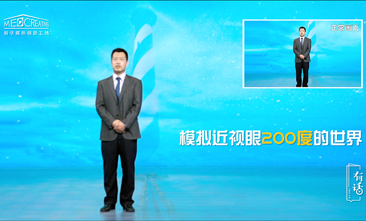 說到這,很多人就會說,近視眼戴副眼鏡就行了,對生活的影響真的這么大嗎?真的會有那么可怕的后果嗎?在這里,我給大家模擬一下,不同視力程度的人看到的世界。我們正常的眼睛看到的世界是清晰明亮的,正如您現(xiàn)在看到鏡頭里的我是清晰的,我臉上的表情你能夠看到。到了200度近視的患者眼里,世界就已經(jīng)開始變得模糊了。這個時候我在說話,我的眼睛在看著你,你還是能看得到的。在這個階段如果我們能夠采取一個合理的矯正方式,是有機會維持并且把我們的視力恢復到一個正常的范圍。