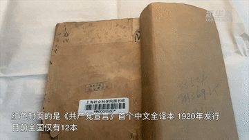 紅色封面的是《共產(chǎn)黨宣言》首個(gè)中文全譯本,由陳望道翻譯,于1920年發(fā)行,目前全國(guó)僅有12本。