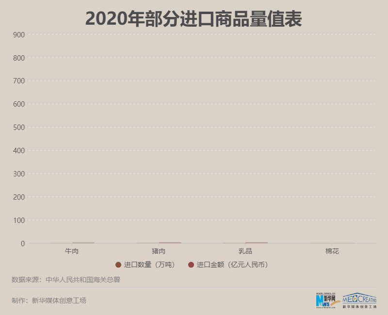 中華人民共和國海關(guān)總署公布的相關(guān)數(shù)據(jù)顯示,2020年全年消費品進口額1.57萬億元,同比增長8.2%。其中,2020年全年豬肉累計進口439萬噸,同比增長108.3%,進口額達834.9億元人民幣;牛肉累計進口212萬噸,進口額達到706.0億元人民幣,同比增長27.7%;啤酒累計進口58423萬升,(倘若以500ML一瓶換算)相當于全年進口11.68億瓶啤酒。