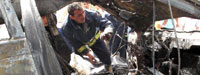 救援人員在爆炸現(xiàn)場忙碌
