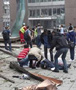 挪威警察從爆炸現(xiàn)場抬出受傷人員