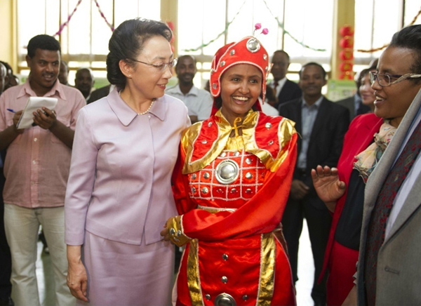 ????新華網(wǎng)北京5月6日電 據(jù)新華社“新國際”微博報道,李克強(qiáng)總理夫人程虹5日在埃塞俄比亞總理夫人羅曼·塔斯法耶的陪同下參觀了亞的斯亞貝巴大學(xué),觀摩漢語授課,與學(xué)生們交流,觀看學(xué)生們的中國文化才藝展示,還捐贈了書籍、計算機(jī)等物品。程虹說,你們是文化的紐帶,感謝你們對中國人民的情誼。你們對中國文化的熱愛感動了我,也會感動中國人民。