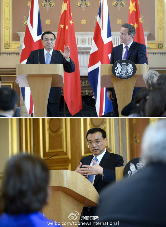 ??? 新華網(wǎng)北京6月18日電 據(jù)新華社“新國(guó)際”微博報(bào)道,17日,李克強(qiáng)與卡梅倫共見記者。李克強(qiáng)說,中英共同設(shè)立總額2億英鎊的科學(xué)基金,以加強(qiáng)聯(lián)合科學(xué)創(chuàng)新合作,第一個(gè)合作項(xiàng)目就是太空項(xiàng)目,這顯示了“我們合作的雄心”。未來5年中國(guó)將向英派遣1萬名公費(fèi)留學(xué)生,也歡迎英國(guó)向中國(guó)派遣更多留學(xué)生。