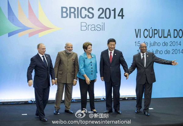 ???? 新華網(wǎng)北京7月16日電 據(jù)新華社“新國際”微博報(bào)道,習(xí)近平在出席金磚國家領(lǐng)導(dǎo)人第六次會晤時提出,要發(fā)揚(yáng)金磚國家獨(dú)特的“開放、包容、合作、共贏”的合作伙伴精神,要堅(jiān)定不移推動經(jīng)濟(jì)可持續(xù)增長,堅(jiān)定不移形成全方位經(jīng)濟(jì)合作,堅(jiān)定不移塑造有利外部發(fā)展環(huán)境,堅(jiān)定不移提高道義感召力。