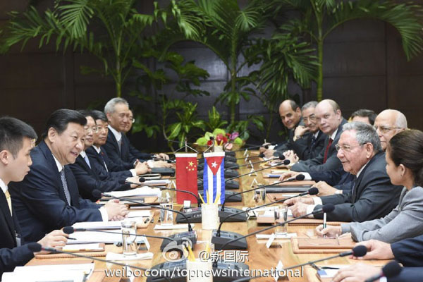 ??? 新華網(wǎng)北京7月23日電 據(jù)新華社“新國(guó)際”微博報(bào)道,習(xí)近平22日同古巴國(guó)務(wù)委員會(huì)主席兼部長(zhǎng)會(huì)議主席勞爾·卡斯特羅會(huì)談時(shí),對(duì)發(fā)展中古關(guān)系提出3個(gè)“堅(jiān)定不移”:堅(jiān)定不移深化肝膽相照的友誼,堅(jiān)定不移開展互利共贏的合作,堅(jiān)定不移做改革發(fā)展的伙伴。(李學(xué)仁攝)