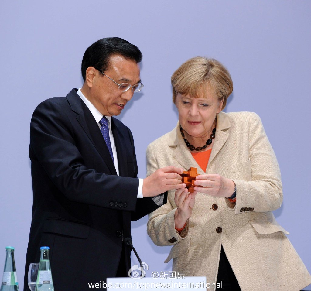 ????新華網(wǎng)北京10月11日電? 據(jù)新華社“新國際”微博報道,10日的中德經(jīng)濟技術論壇上,李克強總理將一精巧的魯班鎖送給默克爾。他說,這是天津中德職業(yè)技術學院師生共同創(chuàng)作的作品,希望我送給默克爾總理。解開魯班鎖是解決一道難題,相信中德之間的合作能不斷創(chuàng)新,共同破解世界性難題,開啟美好的未來。