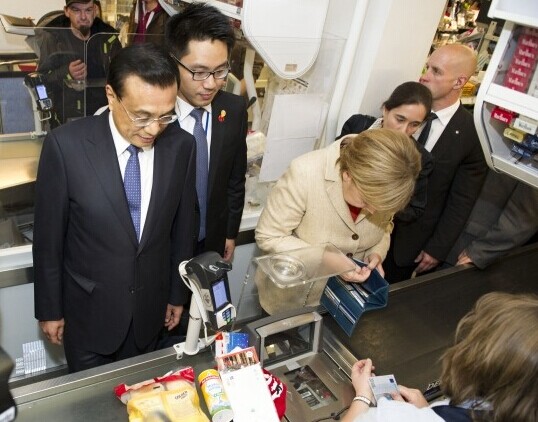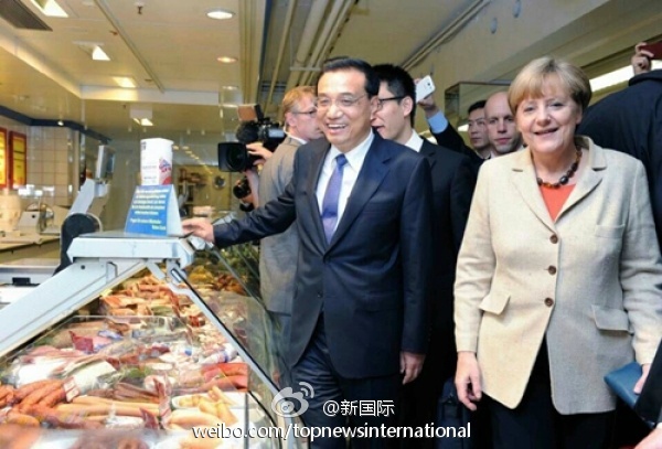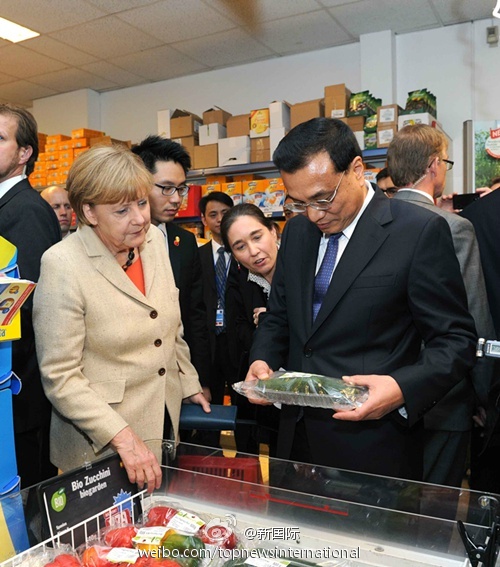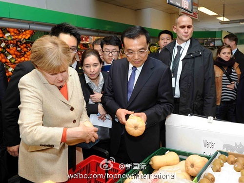 結賬時,默克爾讓李克強總理先走,自己停下來付錢,隨后轉身與他一起離開。兩位總理結束了短暫的超市之行,到酒店準備出席第七屆中德經濟技術合作論壇。