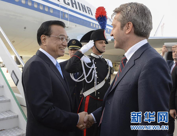 新華網(wǎng)快訊:國務(wù)院總理李克強(qiáng)當(dāng)?shù)貢r(shí)間14日下午抵達(dá)羅馬,開始對(duì)意大利進(jìn)行正式訪問。