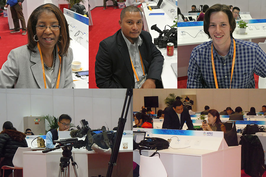 ????日本《每日新聞》的記者井出晉平已經是第二次參加APEC會議報道了。“上次是去年在巴厘島舉行的。與上一屆相比,我個人感覺這次參會的人特別多,規(guī)模特別大?!?/span>