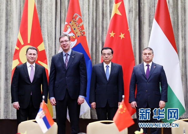 ??? 12月17日,國務(wù)院總理李克強在貝爾格萊德集體會見塞爾維亞總理武契奇、匈牙利總理歐爾班和馬其頓總理格魯埃夫斯基。 新華社記者 姚大偉攝