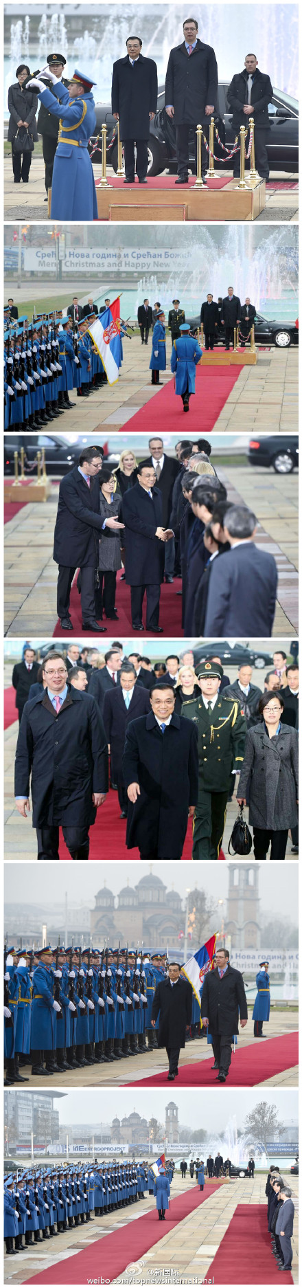 新華網(wǎng)北京12月18日電,據(jù)新華社“新國(guó)際”微博報(bào)道,當(dāng)?shù)貢r(shí)間17日下午,塞爾維亞總理武契奇舉行隆重儀式,歡迎李克強(qiáng)總理的到訪。軍樂(lè)隊(duì)奏響中塞兩國(guó)國(guó)歌,李克強(qiáng)在武契奇的陪同下檢閱了儀仗隊(duì)。這是中國(guó)總理時(shí)隔28年后首次對(duì)塞進(jìn)行正式訪問(wèn)。