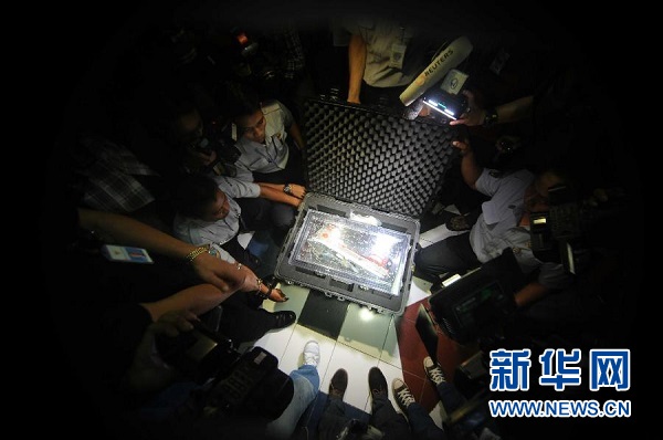 ??? 1月12日,在印度尼西亞雅加達(dá),工作人員打開裝有亞航失事客機(jī)黑匣子的箱子。印度尼西亞國(guó)家交通安全委員會(huì)主席塔唐·庫爾尼亞迪12日說,搜救人員當(dāng)天早上打撈起的失事亞航客機(jī)其中一個(gè)黑匣子——飛行數(shù)據(jù)記錄器狀態(tài)良好。新華社發(fā)(阿貢攝)