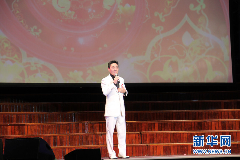 ??????? 2月25日,由中國(guó)國(guó)務(wù)院僑辦和中國(guó)海外交流協(xié)會(huì)聯(lián)合主辦的“文化中國(guó)·四海同春”在悉尼舉辦大洋洲團(tuán)的首場(chǎng)演出,歌手成方圓、中國(guó)好聲音學(xué)員李維、周深等國(guó)內(nèi)知名表演者和中澳藝術(shù)團(tuán)體為當(dāng)?shù)厝A僑華人送來(lái)新春祝福。圖為著名男高音歌唱家唐彪為現(xiàn)場(chǎng)觀眾獻(xiàn)唱《牡丹之歌》。新華社記者趙小娜攝