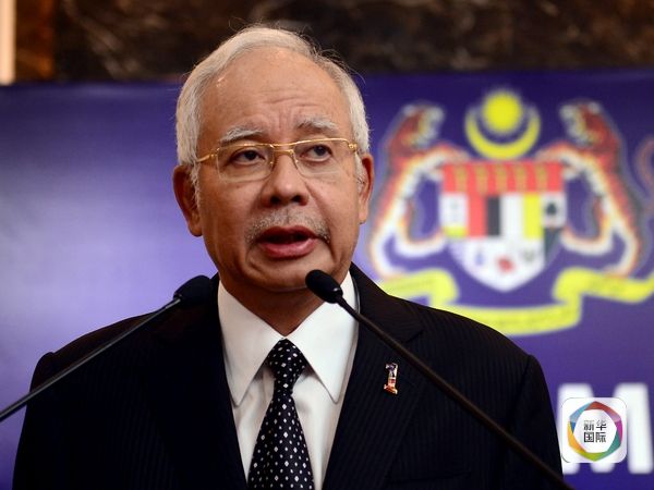 馬來西亞總理納吉布在新聞會上發(fā)表講話。(新華社發(fā))