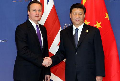 資料圖片:2014年3月25日,中國國家主席習(xí)近平在荷蘭會(huì)見英國首相卡梅倫。