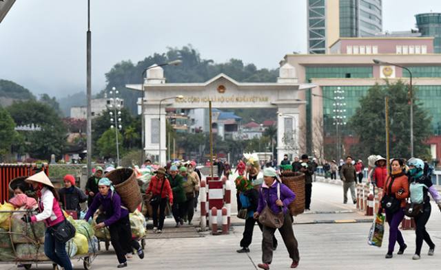 2015年2月5日,越南邊民進(jìn)入中國(guó)河口開(kāi)展邊境貿(mào)易。