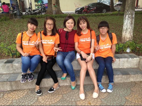 在這里,記者遇到了一群為外國游客提供幫助的越南大學(xué)生志愿者,他們身穿橙色的T恤衫,年輕的臉上洋溢著親切的笑容。