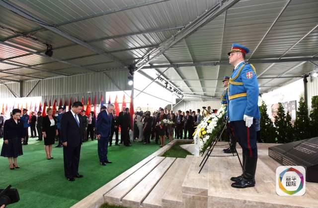 舊址上,又立起一塊新的黑色紀念碑,“緬懷烈士 珍愛和平”8個字莊嚴肅穆,落款“中華人民共和國2016年6月17日立”。紀念碑前,習主席肅立默哀,塞爾維亞總統(tǒng)、議長、總理及全體內(nèi)閣成員參加憑吊。