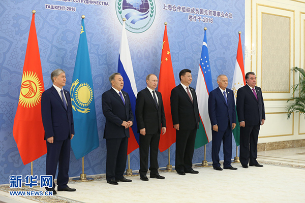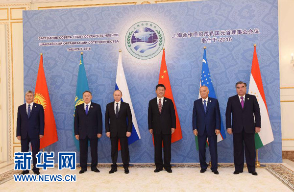 新華社塔什干6月24日電(記者陳贄 霍小光 駱珺)24日,上海合作組織成員國元首理事會第十六次會議在烏茲別克斯坦塔什干舉行。國家主席習(xí)近平同哈薩克斯坦總統(tǒng)納扎爾巴耶夫、吉爾吉斯斯坦總統(tǒng)阿坦巴耶夫、俄羅斯總統(tǒng)普京、塔吉克斯坦總統(tǒng)拉赫蒙、烏茲別克斯坦總統(tǒng)卡里莫夫出席會議。習(xí)近平在會上發(fā)表重要講話,強(qiáng)調(diào)要堅定遵循上海合作組織根本宗旨和原則,牢牢把握發(fā)展大方向,動態(tài)調(diào)整各領(lǐng)域合作方略,確保本組織生機(jī)活力。