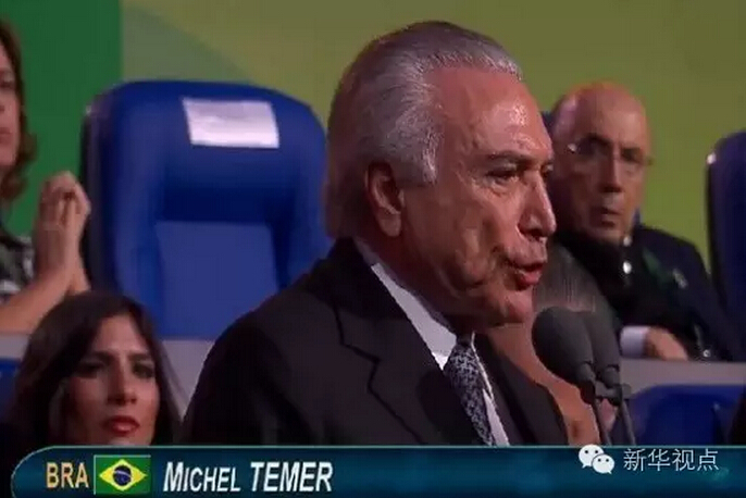 ??? 值得一提的是,出席杭州峰會的特梅爾,奧運會時的身份還是代總統(tǒng),當(dāng)?shù)貢r間8月31日,特梅爾正式就任巴西總統(tǒng),杭州峰會成為他就職后出席的首個國際會議。 里約奧運會開幕式上的特梅爾↓