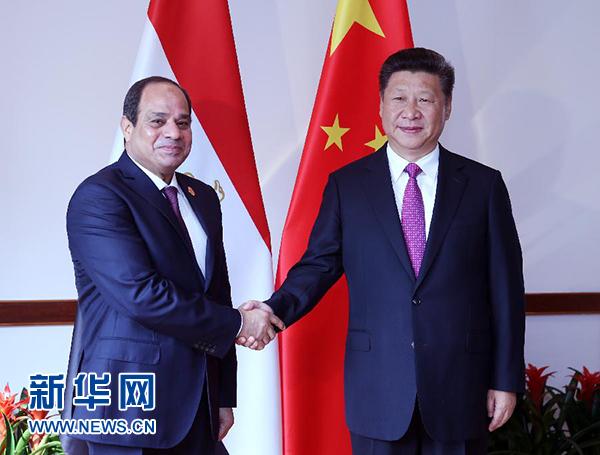 習(xí)近平強(qiáng)調(diào),中方高度重視中埃關(guān)系。我們堅(jiān)定支持埃及維護(hù)國(guó)家穩(wěn)定,自主探索符合本國(guó)國(guó)情的發(fā)展道路,愿同埃方繼續(xù)在涉及彼此核心關(guān)切的問題上相互支持。要將兩國(guó)經(jīng)貿(mào)合作落到實(shí)處,推動(dòng)重點(diǎn)合作項(xiàng)目早日實(shí)施,加強(qiáng)產(chǎn)能、金融、民生、環(huán)保、基礎(chǔ)設(shè)施領(lǐng)域合作,密切在國(guó)際和地區(qū)事務(wù)中的協(xié)調(diào)和配合。雙方要以兩國(guó)建交60周年為新起點(diǎn),推動(dòng)中埃關(guān)系不斷得到新的更大發(fā)展。