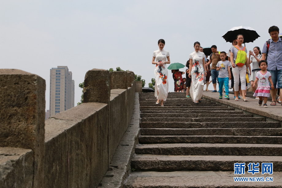 ????拱宸橋面上徐徐走來的姑娘是本次G20杭州峰會的志愿者。栩栩如生的杭州刺繡,搭配姑娘優(yōu)雅大方的儀態(tài),加之中英文雙語的精彩講解,讓中外游客印象深刻。新華網(wǎng) 翁 璟 攝