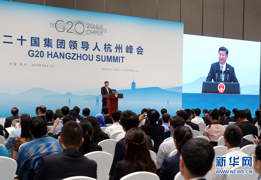 9月5日,二十國(guó)集團(tuán)領(lǐng)導(dǎo)人第十一次峰會(huì)閉幕后,國(guó)家主席習(xí)近平在杭州國(guó)際博覽中心會(huì)見中外記者。 新華社記者姚大偉攝