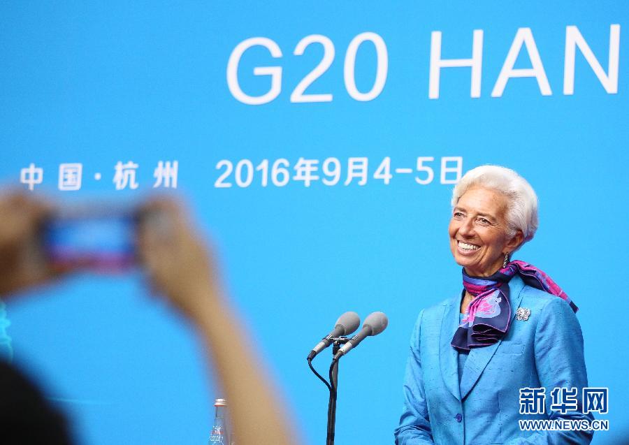 9月5日,國(guó)際貨幣基金組織總裁拉加德在二十國(guó)集團(tuán)(G20)杭州峰會(huì)新聞中心舉行新聞發(fā)布會(huì)。 新華社記者劉穎攝