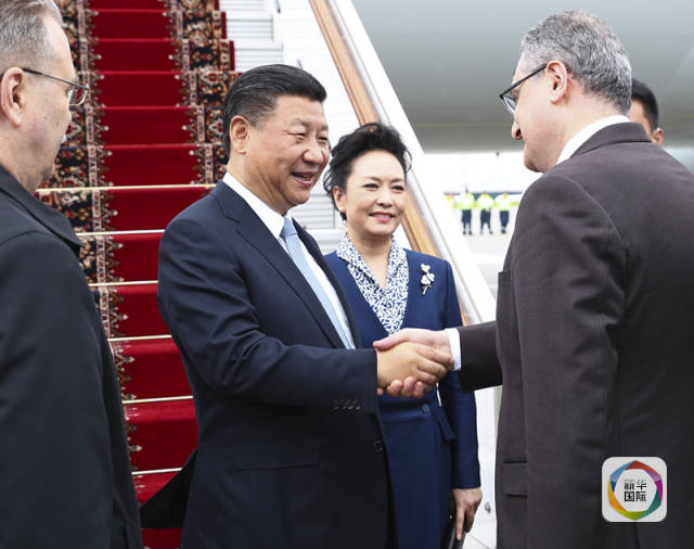 7月3日,國家主席習近平乘專機抵達莫斯科,開始對俄羅斯聯(lián)邦進行國事訪問。這是習近平和夫人彭麗媛受到俄羅斯政府高級官員熱情迎接。(新華社記者謝環(huán)馳攝)