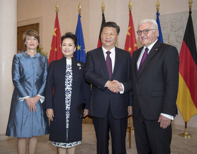 5日上午,德國總統(tǒng)施泰因邁爾在總統(tǒng)府舉行隆重儀式,熱情歡迎習(xí)近平主席來訪。“過去幾十年,德中關(guān)系取得長足進(jìn)展,各領(lǐng)域友好合作成果豐碩,在國際事務(wù)中保持密切協(xié)作。德方愿同中方加強(qiáng)在二十國集團(tuán)等多邊框架下合作,共同維護(hù)國際和平,促進(jìn)世界發(fā)展。”施泰因邁爾在會晤中向習(xí)主席承諾。