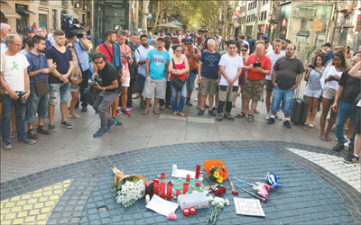 一些受害者家屬在蘭布拉斯大街上以蠟燭和鮮花悼念自己的親人,來自不同國家、不同民族的民眾自發(fā)上前給予擁抱和鼓勵。一位參加悼念活動的巴塞羅那女士對本報記者表示:“我們從未想過恐怖襲擊會真的在巴塞羅那發(fā)生,但當不幸發(fā)生時,我們一定要冷靜下來,不害怕、正視它,才是撫平傷痛、應(yīng)對恐怖分子最好的方式?!?/p>