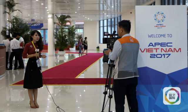 11月5日,在越南峴港,媒體記者在亞太經(jīng)合組織領(lǐng)導(dǎo)人會(huì)議周國際媒體中心進(jìn)行報(bào)道。新華社記者李鵬攝