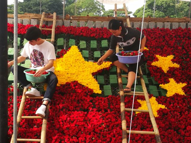 這是花匠們在為越中友誼宮落成移交儀式作準(zhǔn)備。新華社記者侯麗軍攝