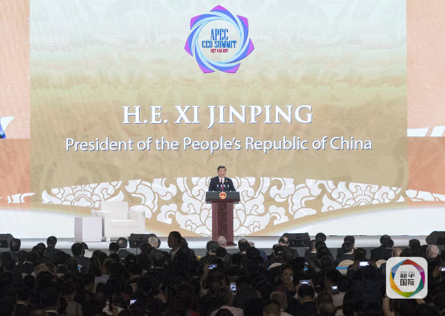 11月10日,國(guó)家主席習(xí)近平應(yīng)邀出席在越南峴港舉行的亞太經(jīng)合組織工商領(lǐng)導(dǎo)人峰會(huì)并發(fā)表題為《抓住世界經(jīng)濟(jì)轉(zhuǎn)型機(jī)遇 謀求亞太更大發(fā)展》的主旨演講。新華社記者王曄攝