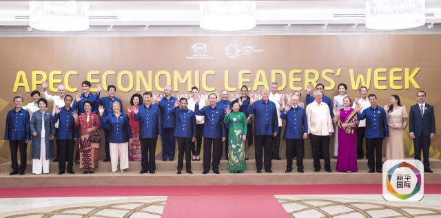11月11日,亞太經(jīng)合組織第二十五次領(lǐng)導(dǎo)人非正式會(huì)議在越南峴港舉行。國(guó)家主席習(xí)近平出席并發(fā)表題為《攜手譜寫(xiě)亞太合作共贏新篇章》的重要講話。這是會(huì)議期間,國(guó)家主席習(xí)近平同其他亞太經(jīng)合組織成員經(jīng)濟(jì)體領(lǐng)導(dǎo)人、代表合影。新華社記者李濤攝
