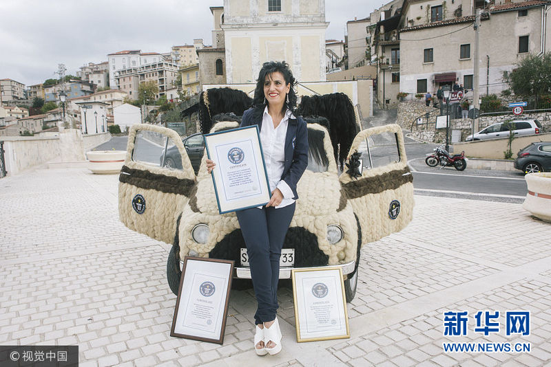 當(dāng)?shù)貢r間2017年10月22日,意大利帕杜拉,一位意大利發(fā)型設(shè)計師Maria Lucia Mugno花費了超過8萬英鎊來裝飾自己的車子,這讓她獲得了吉尼斯世界紀(jì)錄。這項工程需要150個小時來完成,用于裝飾的頭發(fā)總重量達(dá)到100公斤。(圖片來源:視覺中國)